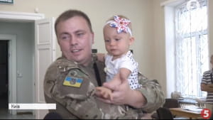 Разом із півторарічною донечкою Софійкою світлини побратимів розглядає демобілізований боєць батальйону Донбас Володимир Шумейко. Каже, що собі на фото "звичайно подобається, Віка ж Ясинська фотографувала, все гарненько".
