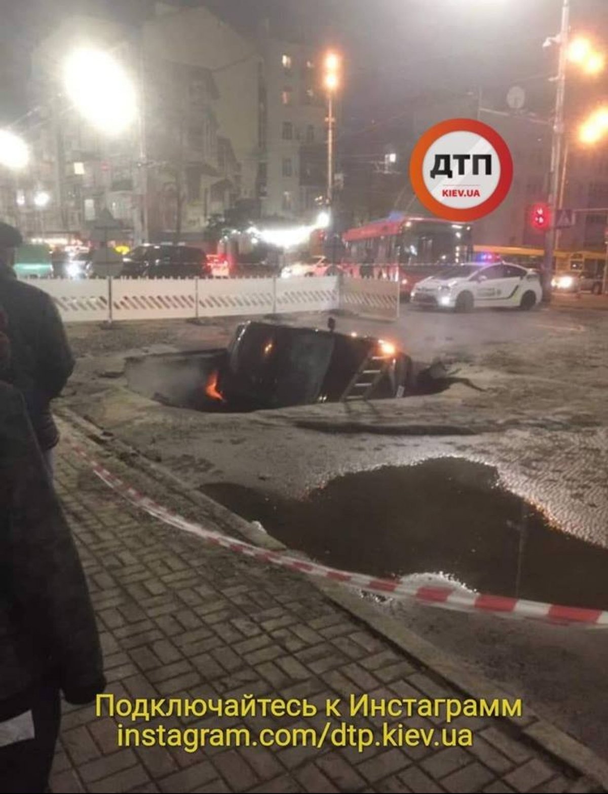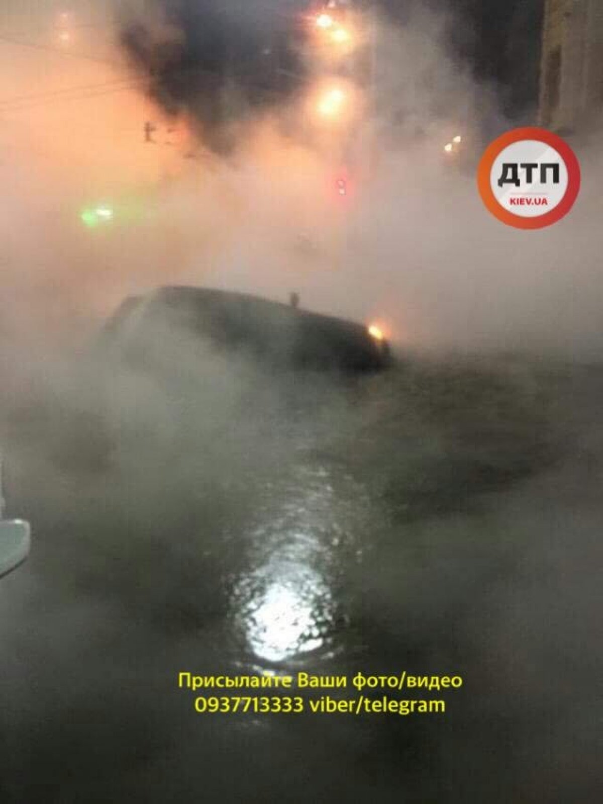 Асфальт фактично зажував автівку: "апокаліптичні" фото з "Олімпійської", де прорвало трубу