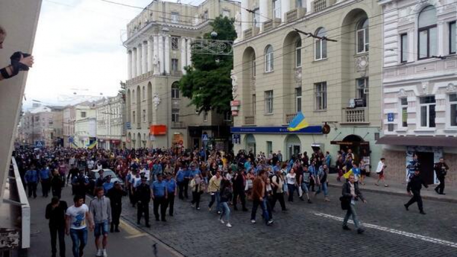Пізніше учасники патіротичного мітингу ухвалили рішення йти на площу Свободи. При цьому очільник Харківської самооборони Ігор Россоха закликав не піддаватися на провокацію та не йти туди.