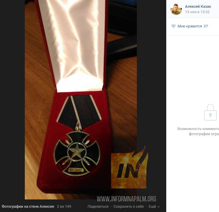 Волонтери також дізналися, що 13 листопада 2016 року на його сторінці родичі почали викладати його бойові нагороди, які він отримав посмертно. Так, указом президента РФ Володимира Путіна від 9 вересня 2016 року Крохун Олексій Володимирович був посмертно нагороджений орденом мужності. Орден теж викладений на загальний огляд.