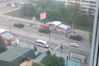 Як повідомив "оператор" в коментарі до відео, колона проїжджала повз його будинок 30 квітня близько шостої години ранку. Техніка рухалася повз універмаг "Росія" убік перехрестя Оборонна-Радянська.