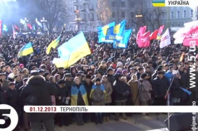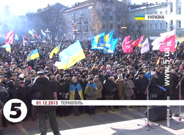 Відповідне рішення у Тернополі ухвалили на позачерговій сесії міськради, яка відбулася просто неба – на Театральному майдані. Міський голова Сергій Надал звернувся до власників кав’ярень, ресторанів, крамниць із проханням припинити свою діяльність, на вході своїх закладів приклеїти таблички «Страйк». А колективи вивести на центральну площу міста. Водночас освітні заклади міста, лікарні працюватимуть у звичному режимі.