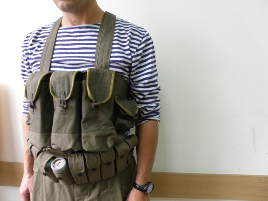 Жилети виготовляють з вогнетривкого матеріалу. Така амуніція дає можливість економно розмістити велику кількість необхідних у бою речей – запасні магазини, ніж, гранати, рацію, ліхтарик, флягу. У деякі кишеньки насипають ще свяченого маку і води.