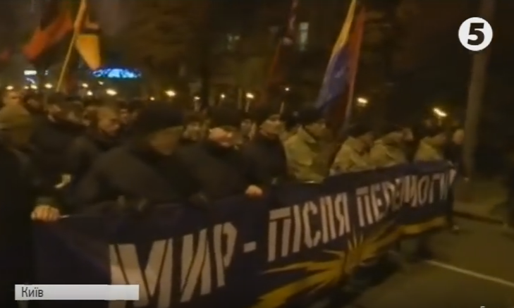 Кількатисячний Марш Нації із смолоскипами та прапорами України, "Правого сектора", цивільного корпусу "Азов" та інших націоналістичних організацій дійшов до Софійської площі у столиці. А рушила хода від монумента Батьківщині-матері – усе щоб вшанувати героїв, які полягли в боротьбі проти російського агресора.
