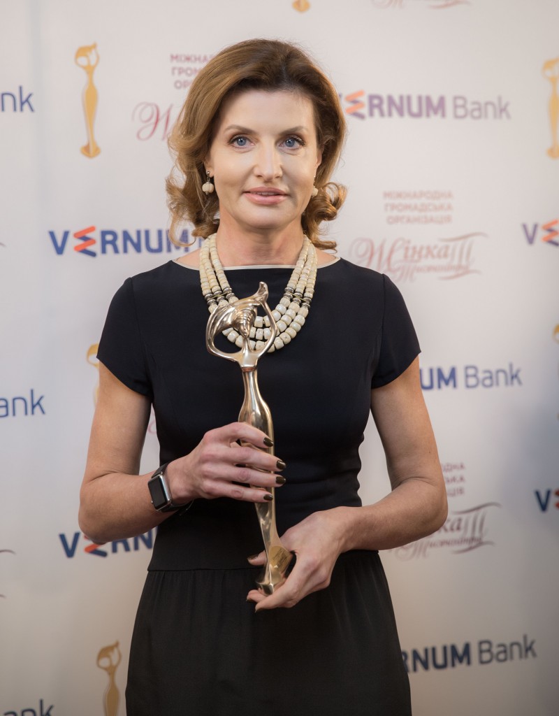 Статуетку, розроблену скульптором Володимиром Шолудьком, Марині Порошенко вручив голова Вищої Представницької ради Премії, композитор, народний артист України Олександр Злотник.