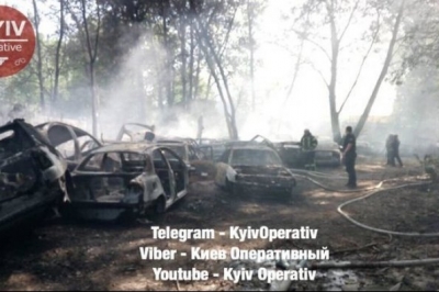 ФОТО: Пожежу на Столичному шосе знищила більше 50 автомобілів на штраф-майданчику
