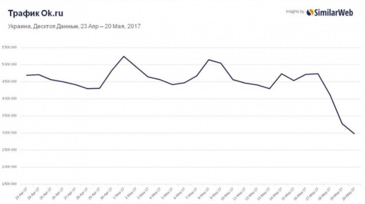 Так, згідно з даними на 20 травня 2017 року, відвідуваність соціальної мережі ВКонтакте в Україні впала на 3,35 млн візитів за 5 днів блокування доступу.