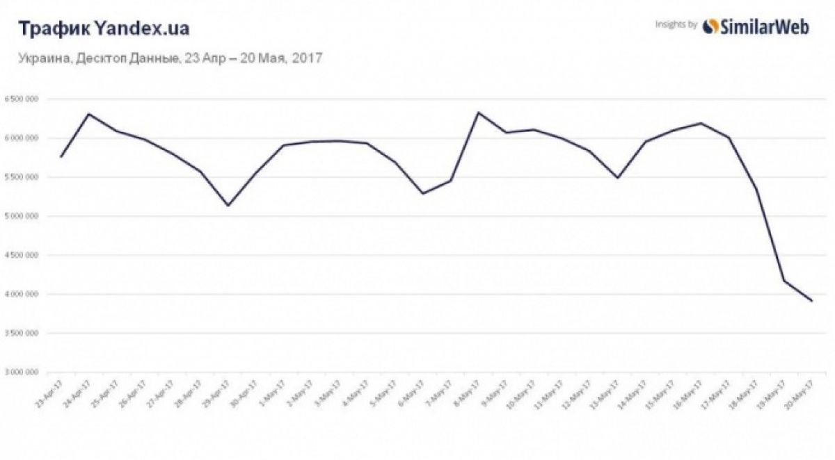 Відвідуваність російського інтернет-порталу yandex.ua знизилася приблизно на 2 млн візитів з 6 млн.