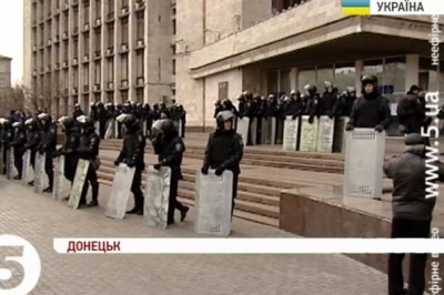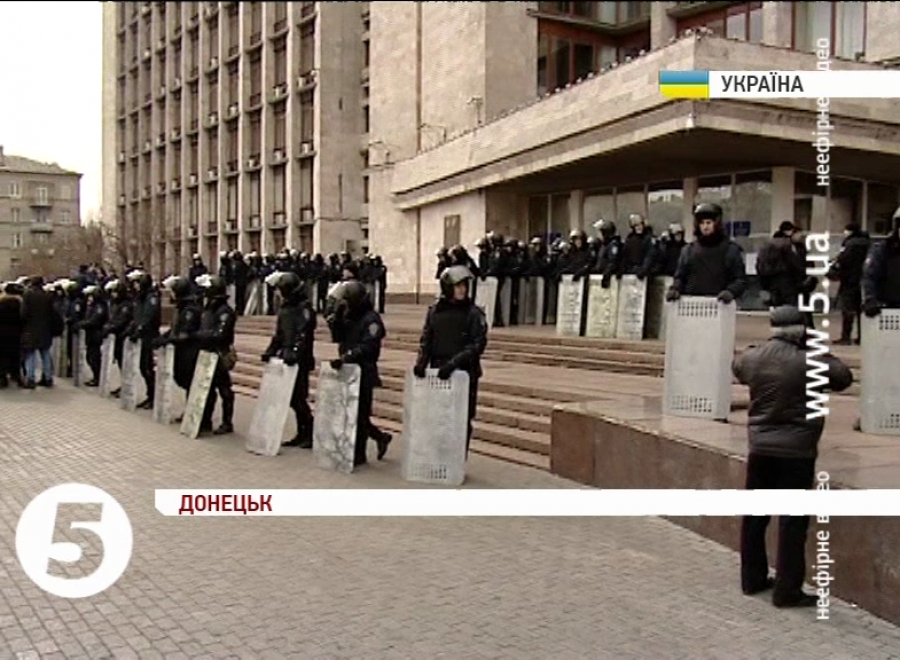 Прихильники самопроголошеного «губернатора» Павла Губарєва відмовилися покидати облдержадміністрацію. Тому вийшли лише із зали до холу. Втім після міліцейського огляду повернутися назад не змогли. Силовики заблокували входи залізними щитами. А над ОДА, де ще зранку висів російський триколор - замайорів український стяг.