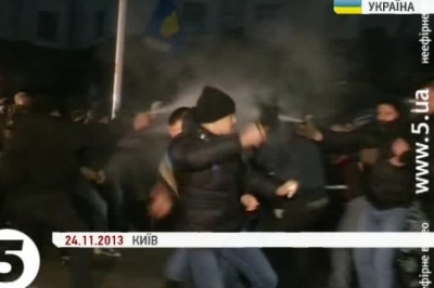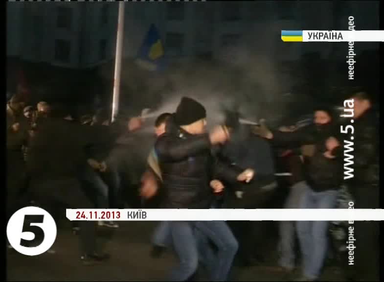 Сутички між мітингувальниками та правоохоронцями біля Кабінету міністрів спалахнули надвечір неділі. Частина людей спробувала прорватися на площу перед урядом, однак міліція цьому перешкодила. Мітингувальники виламали шлагбаум і ним же почали пробивати кордон «Беркуту». Спецпризначенці намагались відбиватися кийками. Під час штурму розпилювали сльозогінний газ, у чому правоохоронці і мітингувальники звинувачували одне одного.