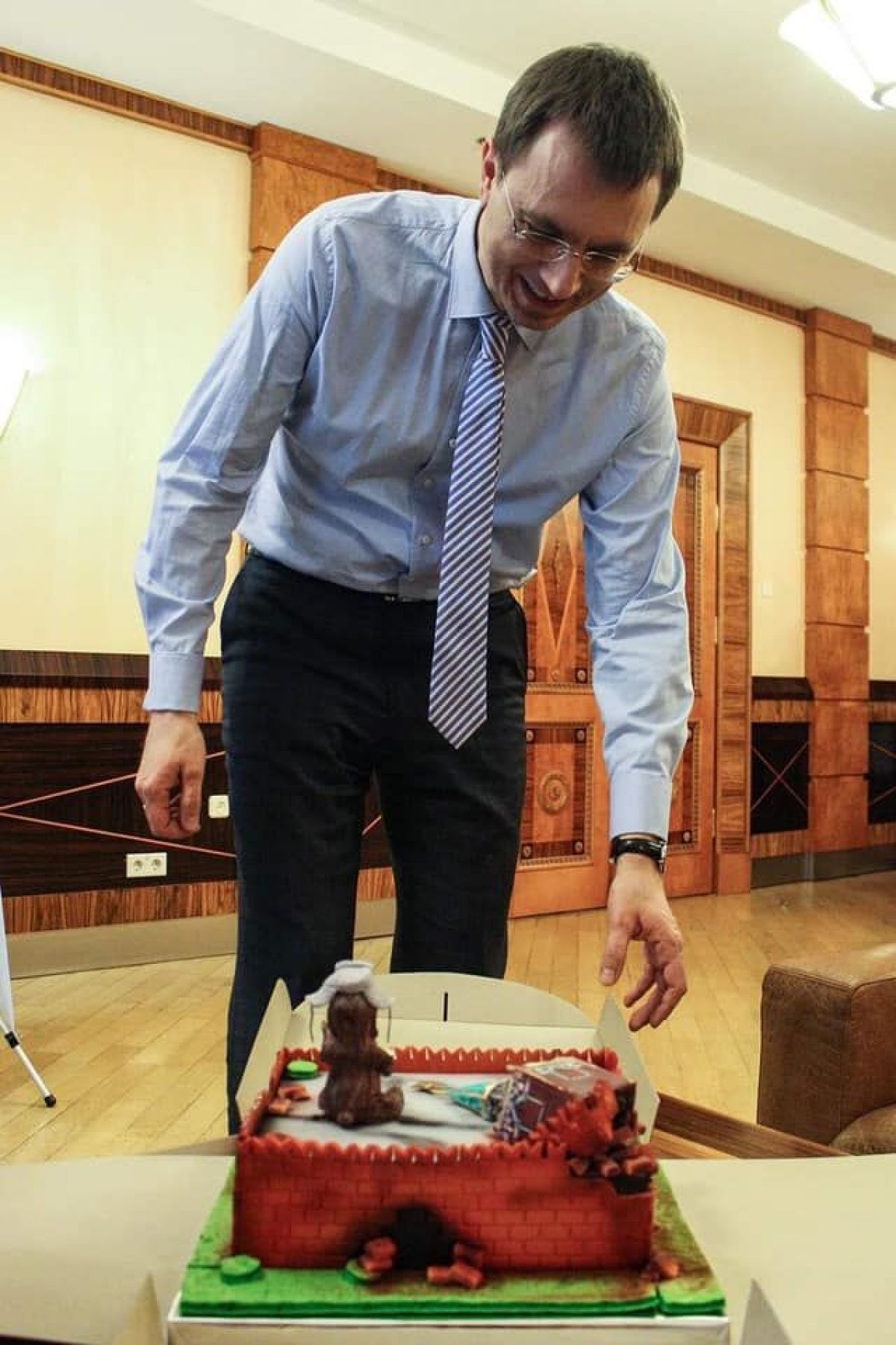 На ювілей міністр інфраструктури України Володимир Омелян отримав торт у вигляді руїн Кремля. Відповідне фото виклала на своїй сторінці у Facebook прес-секретар міністра Марина Томко.