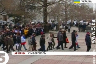 Серед вимог до депутатів автономії – не коритися новій владі, не допустити масового безладу, та повернутися до Конституції зразка 1992-року. Документ, зокрема, передбачає більшу самостійність півострова в ухваленні рішень, дозволяє розподіляти податки на місцях та розширює права російської мови. Мітингарі вийшли під російськими прапорами та з георгіївськими стрічками. До людей вийшов спікер кримського парламенту Володимир Констатинов. Він заявив: голос Криму мають почути у Києві, а найближче засідання сесії пообіцяв провести вже завтра.