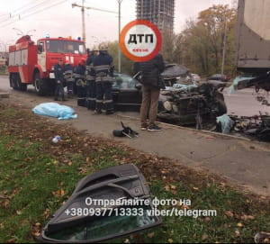 Моторошна аварія на вулиці Заболотного у Києві. За даними очевидців дорожньо-транспортної пригоди, під час автоперегонів, які влаштували двоє водіїв на дорозі у Києві, один з них на швидкості влетів у припарковану вантажівку, інформує видання "Лівий берег".