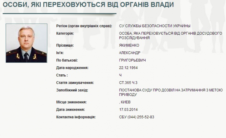 Вказується, дата зникнення екс-голови СБУ - 17 березня 2014 р.