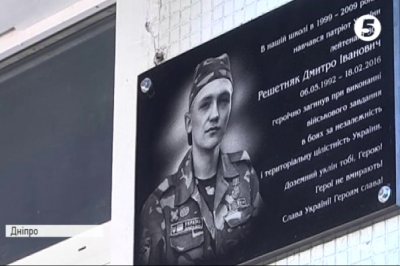 У Дніпровській середній школі №96 відкрили меморіальну дошку золотому медалісту й офіцеру ЗС України Дмитру Решетняку. Сім місяців тому 22-річний боєць загинув під Пісками на Донеччині.