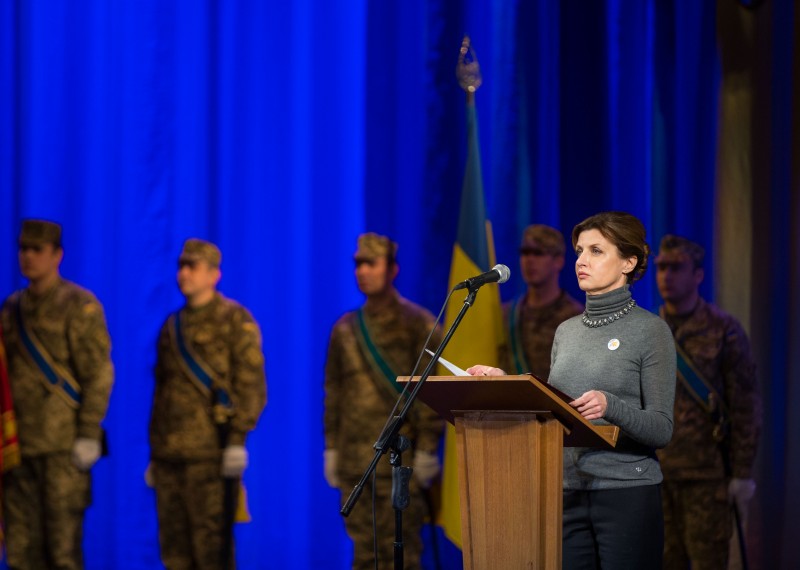 Дружина Глави держави зауважила, що за кожним солдатом, кожним офіцером та кожним українським воїном стоїть його родина – мати, дружина, діти. "І мені дуже приємно, що сьогодні в цій залі наші військові сидять поруч зі своїми рідними і близькими. Адже мир – це коли вся родина разом", - додала вона.