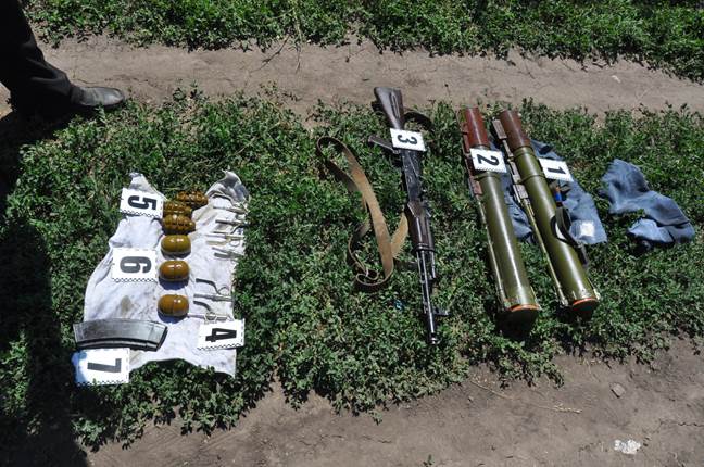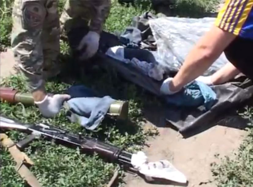"Із замаскованої під купу побутового сміття схованки СБУ вилучила два гранатомети "РПГ-22", автомат Калашникова, набої калібру 5,45 мм, шість гранат "Ф-1" та "РГД-5", - йдеться у повідомленні.