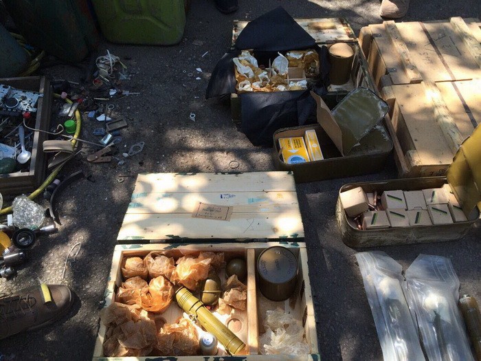 Схованку зі значною кількістю засобів ураження виявила Служба безпеки України в районі проведення антитерористичної операції. Про це повідомляє прес-центр СБУ.