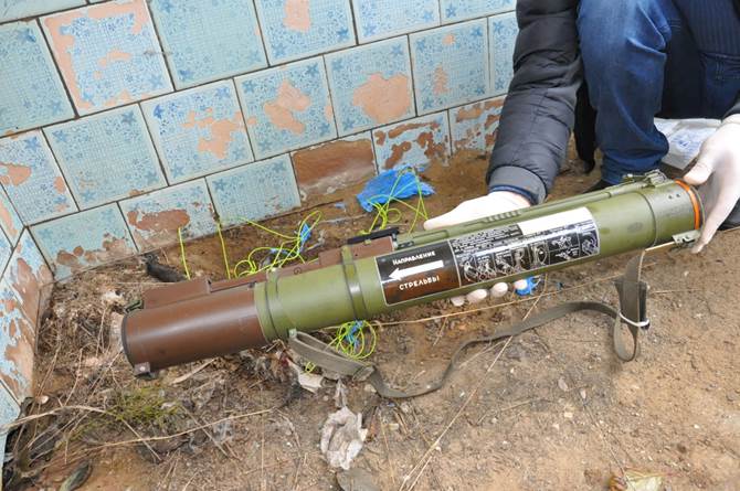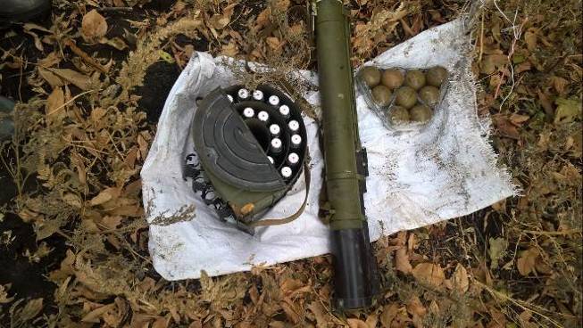 Зі схрону вилучено гранатомет РПГ-22, дев'ять гранат РГН та 26 гранат ВОГ-17. Про це повідомляє прес-центр Служби безпеки України.