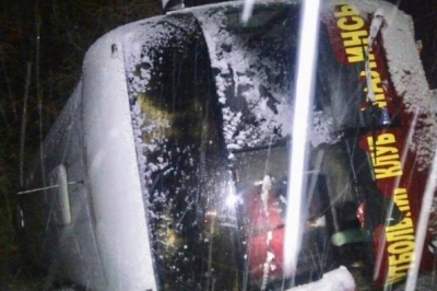 ДТП на Львівщині: перекинувся автобус, що перевозив аматорську футбольну команду "Малинськ" з Рівненської області. Під час аварії ніхто не постраждав.
