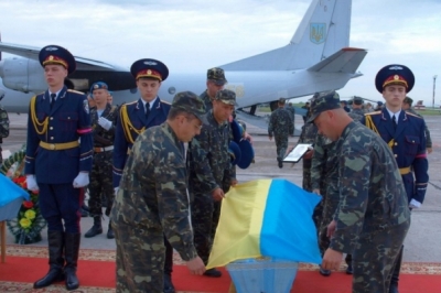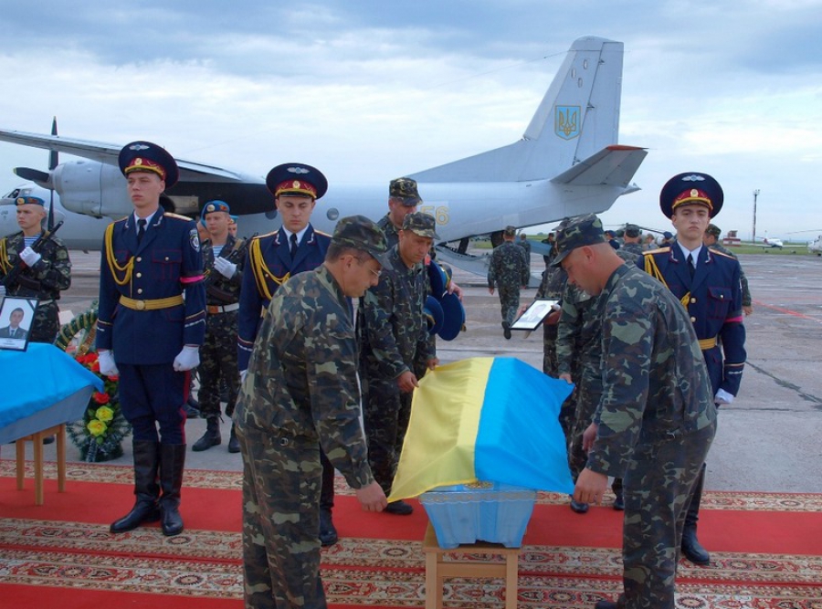Як зазначили у оборонному відомстві, ритуал прощання відбувся на злітно-посадковій смузі, де приземлився літак Ан-26 Збройних Сил України з тілами полеглих героїв на борту: майора Олександра Сабади, майора Сергія Руденка, майора Руслана Плоходька, капітана Миколи Топчія та старшого лейтенанта Ігоря Грішина.