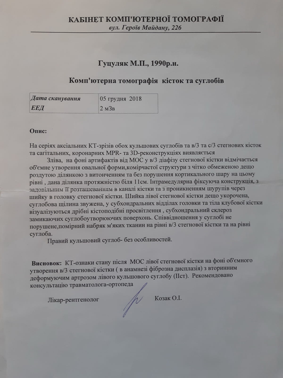 "В Ізраїлі на консультації мені повідомили, що проблему можна вирішити, зробивши одну, але дуже складну операцію. Потрібно видалити фіксувальний стержень і осередок фіброзної дисплазії зі стегнової кістки, а це приблизно 15 см. Наступний крок під час операції – повністю замінити кульшовий суглоб. На стегнову кістку треба поставити ще один імплантант, який замінить видалену частину", – розповіла Марина.