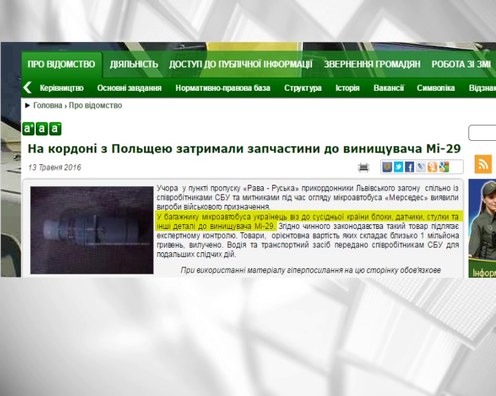 Вартість знахідки становить близько одного мільйона гривень. Правоохоронці вилучили деталі, із водієм наразі працюють слідчі СБУ.