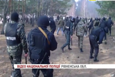 На Рівненщині бурштинокопачі чинили опір працівникам поліції. Майже тисяча осіб у балаклавах і камуфльованому одязі, озброєні дерев'яними битами, камінням, палицями заблокували дорогу поваленими деревами та чинили опір працівникам правоохоронних органів.
