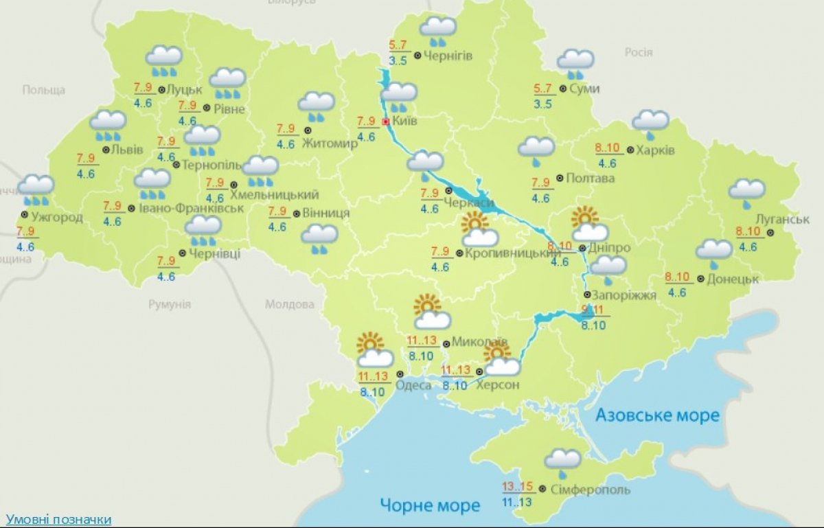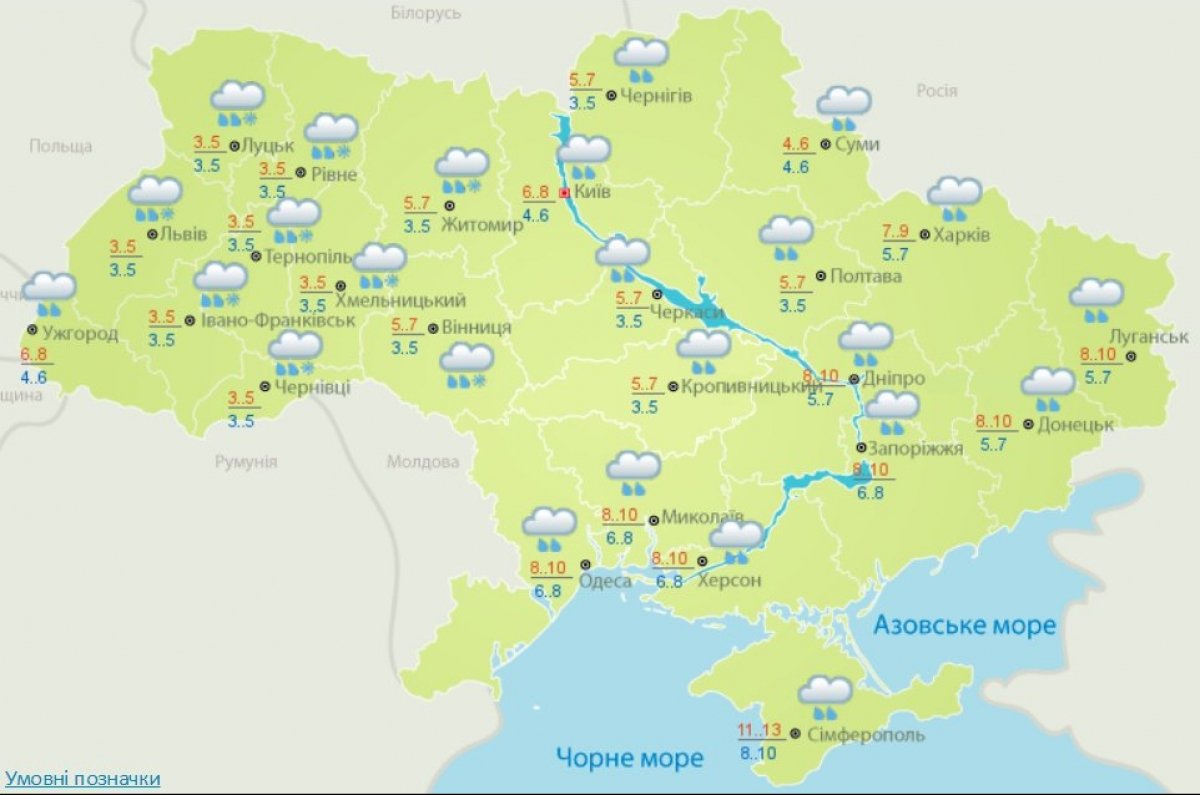 Детальніше погоду по регіонах України дивіться на мапах: