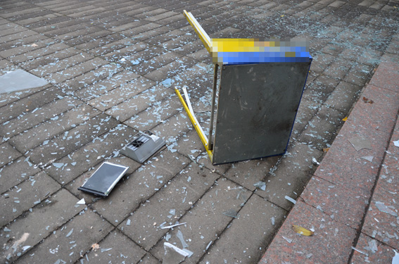 Повідомляється, що лише на світанку перехожі побачили пошкоджений банкомат та вікна у приміщенні. За попередньою інформацією, з банкомату гроші не викрадено.