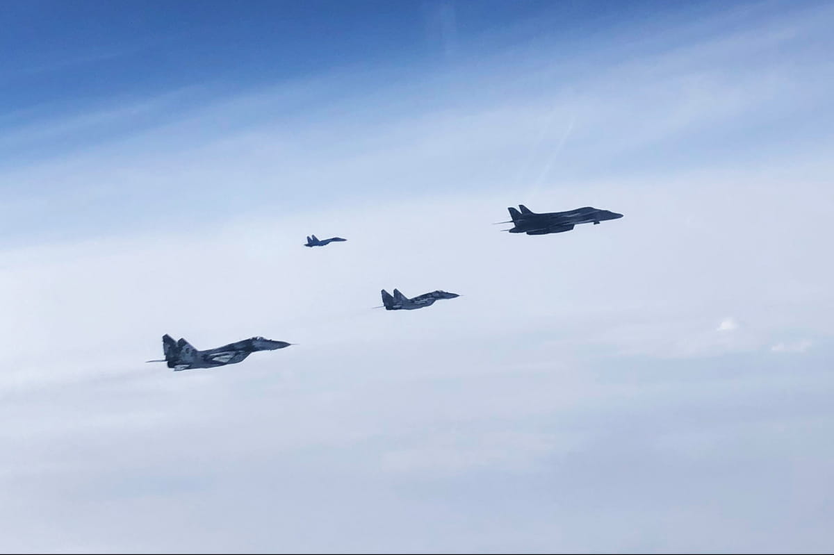 "Зранку 29 травня пара стратегічних бомбардувальників ВПС США B-1B Lancer перетнула повітряний простір України. Винищувачі українських Повітряних сил – пара Су-27 та пара МіГ-29, пришикувались до американських літаків та здійснили їх супровід по заданому маршруту", – зазначається у повідомленні.
