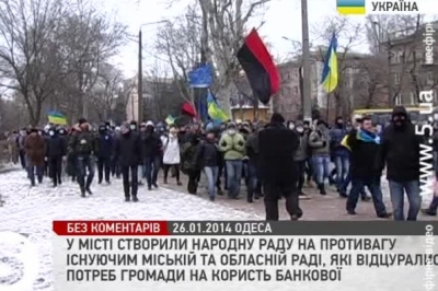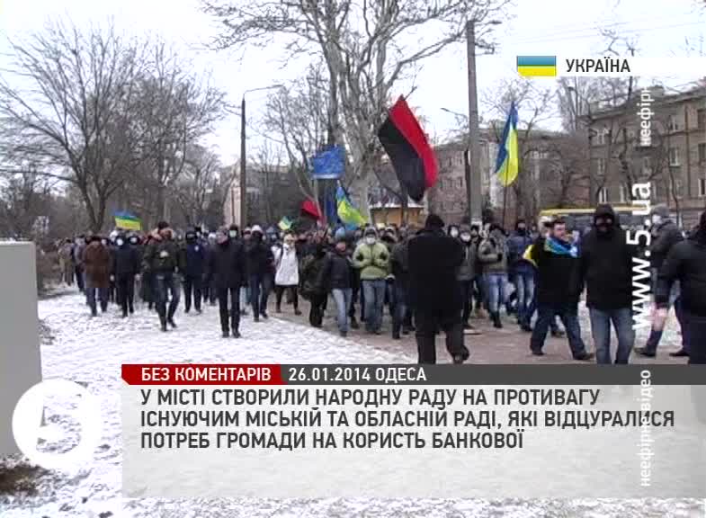 По закінченню віче кількасот радикально налаштованих молодиків відділилися від євромайданівців та рушили від пам’ятника Дюку до будівлі облдержадміністрації. І протягом ходи до них долучилися іще кілька тисяч небайдужих містян. А от під будівлею ОДА тривав мітинг прихильників Партії регіонів, то ж політичних супротивників розділив кордон міліції - обійшлося без сутичок Потому, від будівлі ОДА вирушили до міськради. Ця будівля оточена силовиками, комунальною технікою і вантажівками зі сміттям.