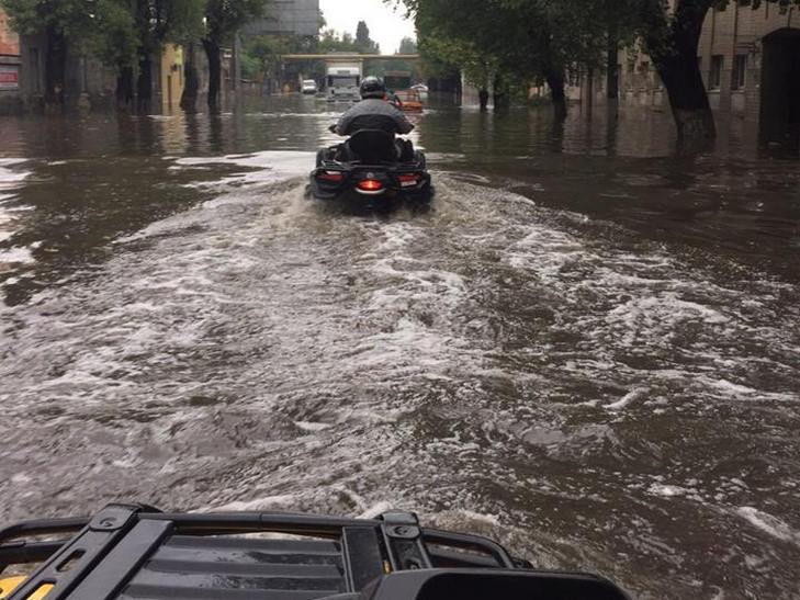В Одесі на затоплених зливою вулицях городянам почнуть допомагати водолази Одеської міської ради на квадроциклах. Так, прес-секретар віце-мера Одеси Андрія Котляра Микола Покровський, у зв'язку з погіршенням погодних умов Котляр прийняв рішення направити для надання допомоги громадянам частину особового складу комунальної установи "Рятувально-водолазна служба Одеської міської ради", інформує УНІАН.