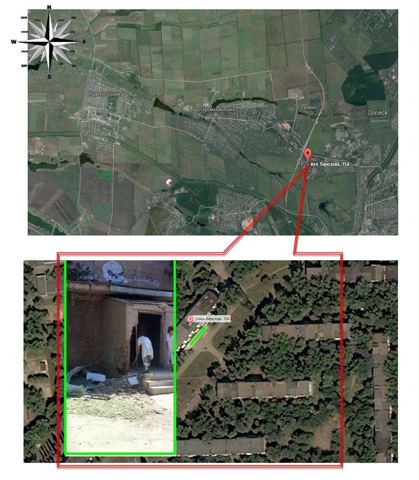 Зі слів офіцера, "спеціалізовані джерела вказують на те, що за такою адресою розташована поліклініка №3 міської лікарні №25 і там, цілком вірогідно, може розташовуватися дитяче відділення. Подальше вивчення фотодоказів місця події дозволило визначити і напрямок обстрілу житлового будинку за адресою м. Донецьк, вул. Бірюзова 35-А. Отож, обстріл вівся з північно-східного напрямку, тобто абсолютно з протилежного боку від місць розташування сил АТО".