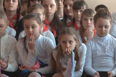 Дітям "у правильному руслі" доносять інформацію про ситуацію в "ДНР". У школах "ДНР" ввели так звані "уроки громадянськості", на яких вибудовують у дітей вигідну терористам картину світу. Відео такого пропагандистського "уроку" оприлюднило "міністерство інформації ДНР", повідомляє УНІАН.