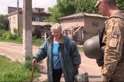 Мешканка селища "Опитне" в інтерв'ю "Військовому телебаченню України" розповіла про своє ставлення до українських армійців. Вона, зокрема, повідомила, що бійці АТО допомагають їй їжею та ліками: "Вони самі привозять. То хліб привезуть, то макарони, то цукор – усе дають".