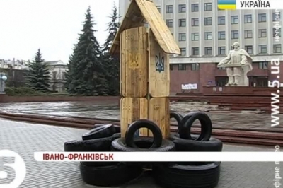 Змайстрували такий стовп із шин та щитів, які євромайданівці використовували під час захоплення Івано-Франківської ОДА. На ньому вивішуватимуть світлини посадовців-хапуг. Перші фото і прізвища, які принесли активістам івано-франківці, зараз упорядковують і роздруковують. Найближчими днями їх вивісять на загальний огляд.