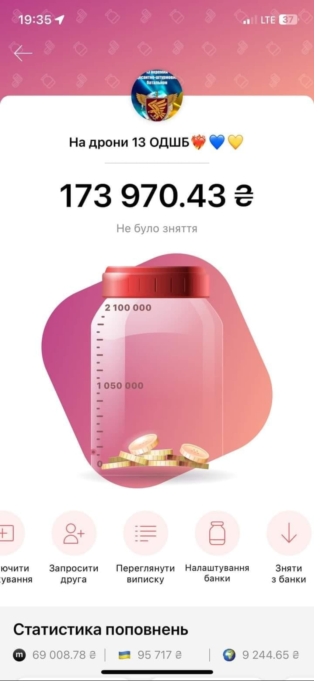 Закупівлею займається волонтерка Світлана Пчеловська – сестра воїна 13-го ОДШБ Олександра Пчеловського, який загинув під час харківської операції. Пані Світлана відзвітувала, що з банки було знято 158 304 грн, за які одразу купили дрони.