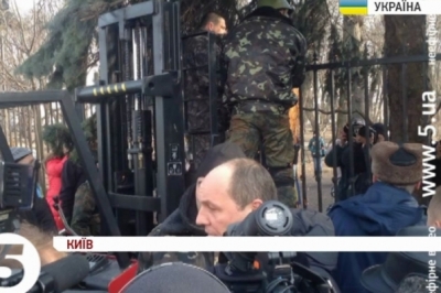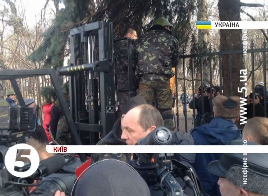 Це робиться задля того, аби забезпечити вільний доступ громадян до території, прилеглої до Верховної Ради. Одразу після цього біля парламенту зібрались комунальники та представники Самооборони Майдану, які взялись демонтувати огорожу. Секції паркану спилюють болгаркою і одразу вантажать.