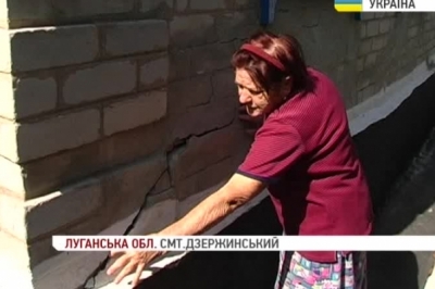Олександр Гончаров показує тріщини, які з’явилися за останній місяць. Від одного будинку відходить веранда, в іншому – ще по свіжій штукатурці нові шрами. Будинки у селищі Дзержинський почали руйнуватися після підземних поштовхів.