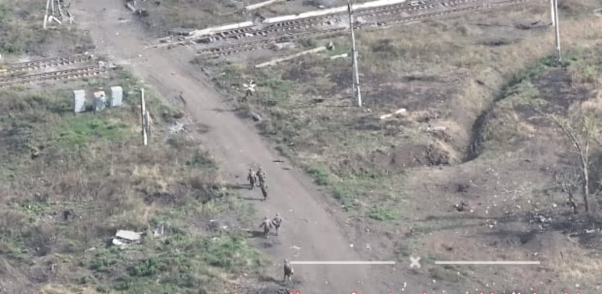 На ролику видно, як шестеро окупантів біжать уперед, несучи свої торби. А потім з’являються ще двоє, які чомусь вирішують бігти в інший бік.