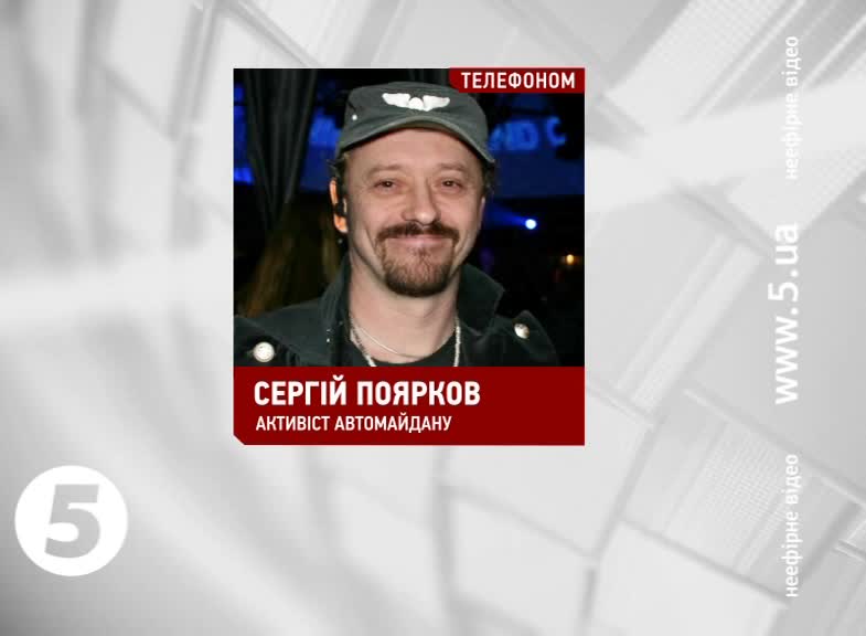 Сергій Поярков, активіст Автомайдану: «Мене викликали на допит по карній справі. Особисто мені жодних офіційних пояснень не надали. По-перше, ми подивимося, чи готові вони до мого допиту. По-друге, мені дуже цікаво, як можна допитувати свідка у справі, який не бачив подій. Те, що сталося, воно сталося після того, як я в голові колони поїхав вперед».