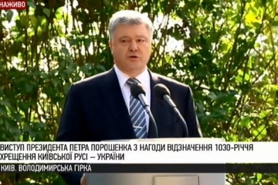 Нагадаємо, Україна відзначає 1030-річчя хрещення Київської Русі-України. Зранку на Володимирській гірці відбулися заходи за у часті Президента та очільників різних конфесій в Україні.