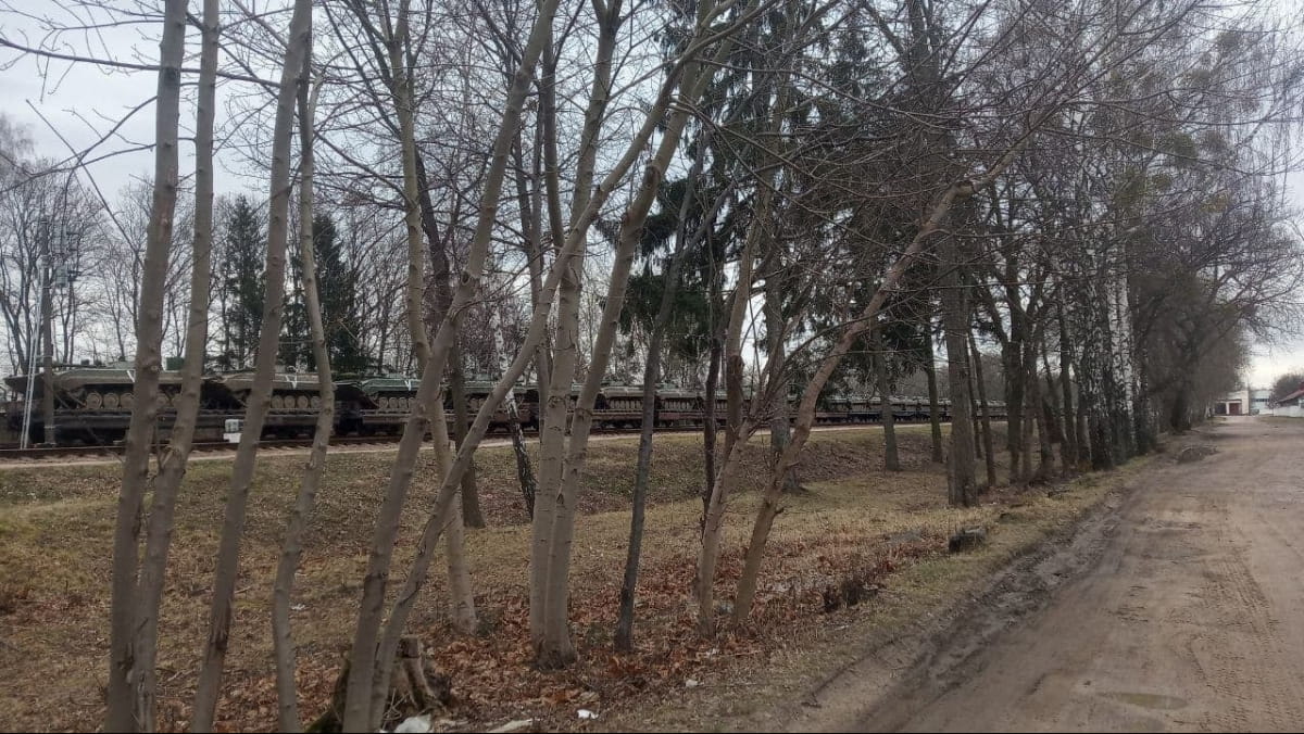 Поблизу залізничної станції Брест, що поруч з українським кордоном, зафіксували ешелон з російською військовою технікою. Про це повідомляють у соцмережах.