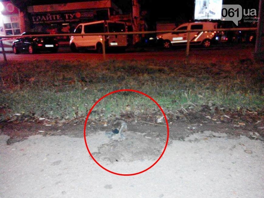На протилежному боці вулиці, за 50 метрів від шашличної, поліцейські знайшли імовірно частину пристрою, з якого було здійснено постріл.