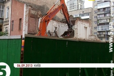 Споруду на вулиці Саксаганського у центрі Києва - знесли два дні тому. На території працював екскаватор. Нині від будинку лишилися тільки дві стіни. Там планують звести триповерховий торгово-офісний центр із прибудовою. Земельну ділянку у 2006-му році Київрада передала в оренду компанії "Аркор". Місцеві мешканці побоюються - нове будівництво може завдати шкоди навколишнім спорудам. Натомість в управлінні охорони культурної спадщини заявляли, що маєток не мав охоронного статусу.