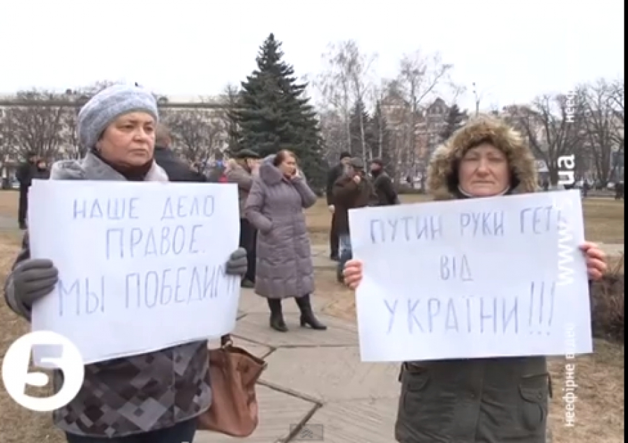 Проросійський активіст: «Здесь все местные, все с Донецка, Донецкой области. Потому, что были российские флаги, потому, что вон, висит российский флаг, поэтому считают, что это россияне. Потому, что считают, что проплатили нас, хотя не проплачивали. Деньги собираются здесь на чай, на кофе, на бутерброды. Сами собираем».