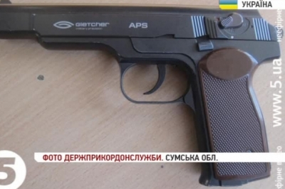 Під час перевірки документів спеціально натренована собака зреагувала на цього чоловіка. Як з’ясувалося, під сорочкою за ременем штанів у мандрівника був пневматичний пістолет. Зараз із затриманим працюють слідчі.