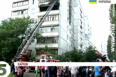 Ігор Лупангін, помічник начальника ГУ ДСНС у Харківській області: "Заявители говорили о том, что здесь произошел пожар, но предварительно говорили о том, что произошел взрыв. Сюда были направлены четыре автоцистерны, одно отделение аварийно-спасательного автомобиля и два отделения автолестницы, потому что очаг пожара был на 5-м этаже девятиэтажного дома. Но огонь перебросился по лоджиям и на 6-ой этаж".