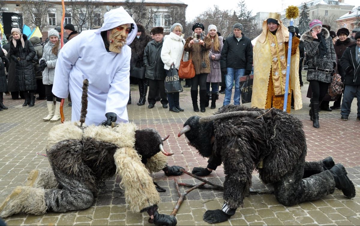 Хтось може перевдягнутися в козу, яка символізує родючість, або надягти маски інших тварин: корови, віслюка, ведмедя, лисиці та інші. Також одягають маски старших людей (дідуся/бабусі) – це символізує досвід і зв'язок з поколінням.